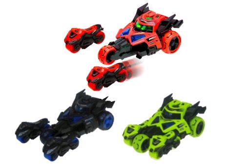 Ten futurystyczny trójkołowiec nie jest jednak zwykłym pojazdem. Z przodu posiada dwie wyrzutnie małych motocykli, co czyni go także pojazdem bojowym!