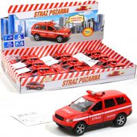 Straż pożarna wykonana z metalowych i plastikowych części, odzwierciedla wygląd rzeczywistego pojazdu.