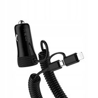 HOCO Z21A to wysokiej jakości ładowarka samochodowa z wbudowanym dodatkowym gniazdem USB do podłączenia innego kabla USB ( ładowanie ) oraz z wbudowanym skręcanym kablem zakończonym dwoma końcówkami / micro usb oraz lighting. Produkty HOCO są akcesoriami PREMIUM, które produkowane są z bardzo dobrej jakości materiałów oraz podzespołów elektronicznych. Model Z21A posiada funkcję szybkiego ładowania a maksymalny prąd to aż 3,4A łącznie.