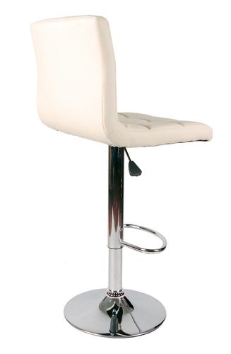 Nowoczesny, stylowy hoker barowy HBA005 wykonany z przyjemnej w dotyku skóry ekologicznej w kolorze jasnego beżu oraz, nadającej ekskluzywnego wyglądu, chromowej nogi zakończonej podstawą typu talerz. Hoker jest w pełni obrotowy oraz posiada funkcję regulacji wysokości.