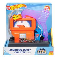Dzieci mogą odkrywać Hot Wheels® City, odwiedzając kultowe miejsca samochodami z serii Hot Wheels®. Zamknij bandytów na posterunku policji, zjedź po rurze w remizie strażackiej, zatankuj paliwo na stacji benzynowej, złap złośliwą małpę w elektrowni i umykaj przed piraniami w akwarium. Zestawy można łączyć bezpośrednio z innymi zestawami Hot Wheels® za pomocą nowego systemu łączenia, który jest kompatybilny z pomarańczowym torem.Zestaw zawiera jeden pojazd Hot Wheels®.Wiekod 4 lat