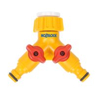 Rozdzielacz Hozelock 2256 na kran 1/2" i 3/4" z nyplem i zaworamiPodwójna złączka do kranu umożliwia podłączenie dwóch węży do jednego kranu zewnętrznego- pasuje większość standardowych kranów ogrodowych- złącze do kranu BSP 3/4'' (G3/4) i BSP 1/2'' (G1/2)- łatwa do zainstalowania Nr katalogowy2256Do kranu z gwintem21 mm (G 1/2"), 26,5 mm (G 3/4")