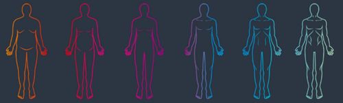 Waga każdej osoby jest indywidualna i zależy od wielu czynników, a waga pozwala na szybkie i precyzyjne określenie tych wartości. Poniższe rysunki pokazują, w jakim stopniu (przy takiej samej masie ciała) zawartość tkanki tłuszczowej wpływa na naszą sylwetkę.
