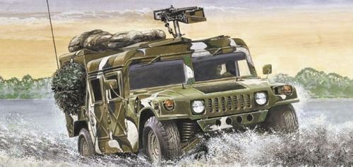 Zestaw zawiera plastikowy model samochodu wojkowego do sklejania.