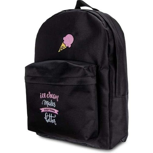 Oryginalny, customizowany plecak!"Lody czynią wszystko lepszym" – ta maksyma ma zastosowanie w każdym przypadku. Również kiedy przychodzi do tematu customizowanego plecaka. Naszywki wykonano metodą haftu komputerowego, co przekłada się na ponadprzeciętną trwałość motywu. Sam plecak też ponosi Twoje rzeczy przez długie lata, jako że wykonano go z solidnego materiału o mocnym splocie. Dodaj swojej stylizacji coś ekstra – zamów swój Icepack!Uniwersalny, czarny plecak – idealny do szkoły i na miasto!Kolorowe naszywki wykonane zapewniającą trwałość metodą haftu komputerowego. Pojemna komora główna. Duża zewnętrzna kieszeń na drobiazgi. Wykonany z solidnego materiału tekstylnego. Pianka na plecach dla większego komfortu.