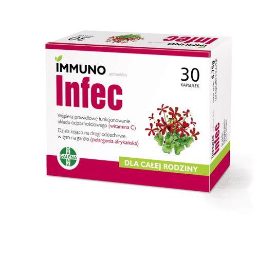 Zawarty w suplemencie diety ImmunoINFEC ekstrakt z korzenia Pelargonium sidoides (pelargonii afrykańskiej) działa kojąco na drogi oddechowe w tym gardło.