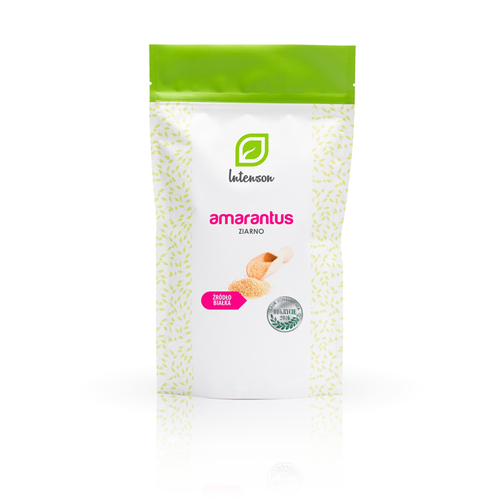 Intenson Amarantus Ziarno – inaczej zwany szarłat lub „zboże przyszłości” to bardzo cenna i użyteczna roślina o szerokim obszarze zastosowań. Przede wszystkim ma o wiele więcej wartości odżywczych niż większość tradycyjnych zbóż. Nasiona amarantusa są bogate w pełnowartościowe białko, lekkostrawną skrobię oraz błonnik pokarmowy. Dzięki temu Amarantus dostarcza do organizmu energię, zwiększa odporność, spowalnia wchłanianie tłuszczu oraz wspomaga pracę jelit. Jest bardzo ważnym składnikiem dla osób aktywnych oraz uprawiających sport.