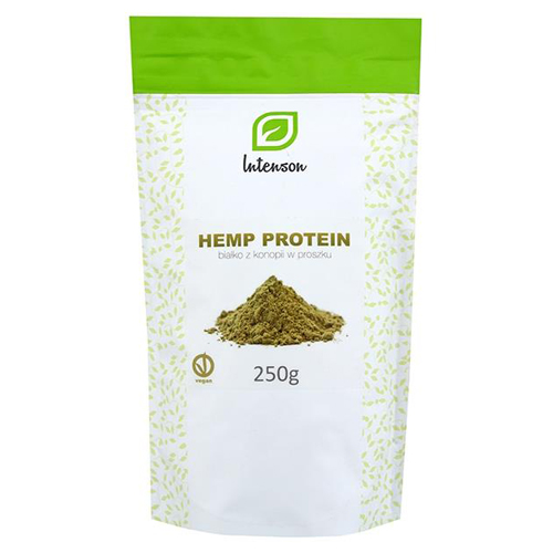 Suplement diety Intenson Hemp Protein to najwyższej jakości naturalne białko pozyskiwane z konopii. Białko Intenson Hemp Protein otrzymuje się wskutek wytłaczania oleju z nasion tej rośliny, ich wysuszania oraz mielenia. Suplementacja preparatem Intenson Hemp Protein, co niezwykle ważne, poza białkiem, dostarcza także bogactwa kwasów omega 3, błonnika oraz witamin z grupy B i aminokwasów. Suplement Intenson Hemp Protein, w związku z wysoką zawartością białka roślinnego, jest polecany osobom prowadzącym aktywny tryb życia oraz sportowcom. Jednakże, o czym również należy wspomnieć, to fakt, iż produkt ten sprawdza się znakomicie w diecie wegan i wegetarian jako dodatek do żywienia!
