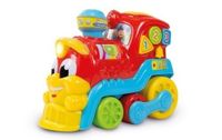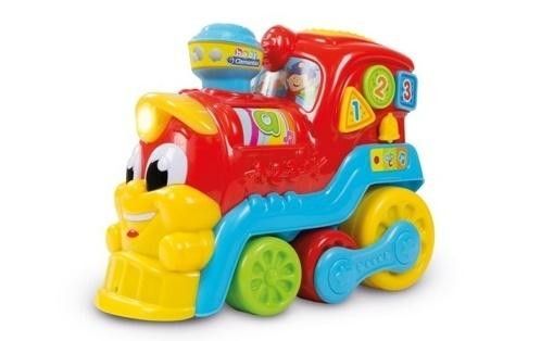 Interaktywny, wesoły towarzysz zabaw, który mówi wiele wierszyków, śpiewa piosenki i wydaje odgłosy prawdziwego pociągu. Uczy pierwszych literek, liczb, kształtów i kolorów.Właściwości:- po naciśnięciu komina wałeczek obraca się i pokazuje pierwsze litery- naciskając trzy duże kolorowe przyciski, dziecko poznaje pierwsze liczby, kształty i kolory- poruszając lokomotywą, koła aktywują wiele sympatycznych dźwięków i wesołych piosenek, zaś oś pojazdu porusza się jak w prawdziwym pociągu- przełącznik off - on - muzykaZabawki linii Baby Clementoni pomagają rodzicom w komunikowaniu się z dzieckiem i wzajemnym oddziaływaniu na siebie od pierwszych dni jego życia . Wzornictwo i innowacyjne kolory, nietoksyczne i wytrzymałe materiały, wypukłości na powierzchni i różne funkcje sprzyjają rozwojowi sprawności wzrokowych, dotykowych i słuchowych, pobudzają aktywność ruchową oraz wywołują pierwsze skojarzenia logiczne.