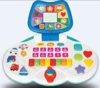 Interaktywny laptop, który poprzez zabawę pomoże każdemu Maluszkowi w nauce cyfr, liter oraz kształtów. Gdy dziecko naciśnie przyciski o różnych kształtach i kolorach, zobaczy odpowiadający im obrazek na ekranie. Każdy klawisz mini-pianinka uruchamia jedną z ośmiu wesołych melodii. Poruszając kółkiem w małej myszce rozpoczniesz zabawę w odgadywanie kolorów, liter i cyfr. Przesuwając strzałkę usłyszysz odgłosy wydawane przez pięć różnych pojazdów.Zabawka wymaga baterii 3x1,5V LR6 (AA), zainstalowane w zabawce.UWAGA! W zabawce znajdują się baterie testowe o małej pojemności, co może być przyczyną słabszego działania. Zaleca się wymianę na nowe, alkaliczne. Jeżeli zabawka nie funkcjonuje prawidłowo, należy wyłączyć zabawkę i włączyć ponownie. Jeśli problem nie ustąpi należy wymienić baterie na nowe.UWAGA! Baterie zawarte w zabawce są także przeznaczone do demonstracji w sklepie. Może się zdarzyć, że baterie się wyczerpią przed zakupem przez klienta i klient będzie musiał wymienić zawarte baterie na nowe w celu uzyskania poprawnego działania zabawki.