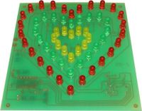 Zestaw przeznaczony jest dla wszystkich lubiących efekty świetlne. Może być doskonałym prezentem na Walentynki. 58 kolorowych diod LED ułożonych jest w kształcie trzech serduszek. Układ sterujący zapalając kolejno poszczególne serduszka sprawia wrażenie pulsowania. Wymiary płytki drukowanej 117x107 mm.