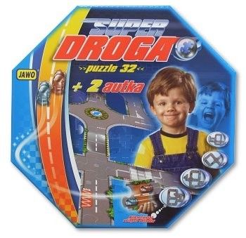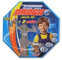 Do zabawy służą dołączone dwa modele samochodów. Całość zapakowana w atrakcyjne pudełko z rączką. Puzzle przeznaczone: dla dzieci od 3 lat.