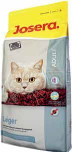 Josera Leger - karma dla kotów z nadwagą i kastratów. Josera Emotion Leger ze zredukowaną zawartością tłuszczu jest znakomitym pożywieniem dla kotów o niskim poziomie aktywności, walczących z nadwagą lub kotów po kastracji. Zwiększona zawartość wypełniaczy powoduje uczucie sytości przy niewielkim dopływie energii. Przy karmieniu dostosowanym do potrzeb Waszego kota, możecie Państwo w stosunkowo krótkim czasie osiągnąć spadek wagi u zwierząt które tego potrzebują. Josera Emotion Leger dzięki ograniczonej zawartości tłuszczu i zbilansowanym składzie jest również karmą dla starszych kotów. Skład: ryż, drobiowa mączka mięsna, kukurydza, mączka mięsna, mączka ze skwarków, włókno buraczane, mączka z łososia, tłuszcz drobiowy, mączka z wątroby, drożdże, substancje mineralne. Analiza: Białko 30% Wapń 0,95% Tłuszcz 9% Fosfor 0,9% Włókno 2,8% - Sód Popiół 7% Magnez 0,09% Energia metaboliczna: 14 MJ/kg Dawkowanie: Waga Zalecana dzienna dawka 2 - 3 kg 35 - 55 g 3 - 4 kg 55 - 75 g 4 - 5 kg 65 - 85 g 5 - 7 kg 75 - 115 g