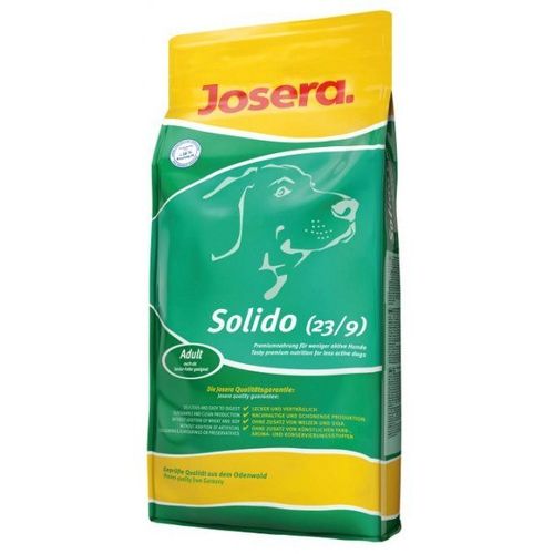 JOSERA Solido - pełnowartościowe pożywienie dla mało aktywnych dorosłych psów. Odpowiednio zbilansowane składniki odżywcze, sprawiają że karma jest zdrowa i smaczna. Przeznaczona jest również dla starszych psów. Opakowania Josera Solido 15 kg są bardzo praktyczne.