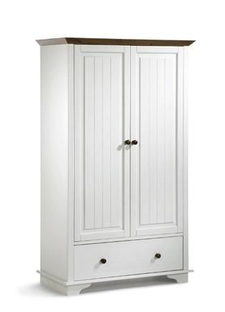 | Materiał: | Drewno sosnowe lite, HDF, biały wosk, metalowe uchwyty |