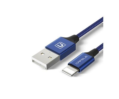 Kabel USB - Lighting do urządzeń marki Apple z gniazdami typu Lighting w mocnym nylonowym oplocie. Kable CAFELE podobnie jak pozostałe akcesoria od tego producenta charakteryzują się najwyższą jakością,użyte materiały powodują, iż każdy produkt jest wyjątkowo trwały oraz modny i designerski. Produkt Premium. Kolor przewodu: niebieski Długość: 1,20 m Rodzaj: komunikacja + ładowanie Gniazda: z USB na Lighting Obsługiwane modele urządzeń: Wszystkie z Lighting ( nowy iOs ) Przepuszczalność prądowa: 2,4A Szybkość transmisji danych: 480Mbps Typ kabla: okrągły z oplotem