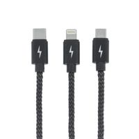 Uniwersalny kabel Devia Pheez 3w1 służący do połączenia smartfonów z ładowarką lub komputerem. Przystosowany do ładowania baterii oraz transferu danych w urządzeniach wyposażonych w gniazda micro-USB, typu C oraz 8-pin. Dzięki swojej konstrukcji jest bardzo wytrzymały. Zastosowany na całej długości metalowy oplot usztywnia i zabezpiecza kabel przed uszkodzeniami mechanicznymi.