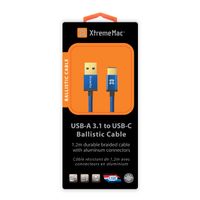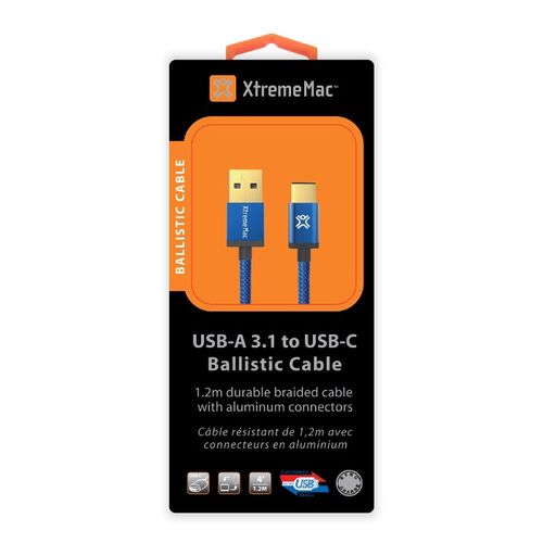 Kabel XtremeMac z końcówkami USB-A 3.1 i USB-C, które są w pełni odwracalne i mogą być podłączone w dwojaki sposób. Kolor niebieski, długość 1,2 metra. Kabel wykonany w konstrukcji oplotowej - nigdy się nie plącze i jest bardziej wytrzymały. Końcówki kabla wykonane z aluminium, dodatkowo pokryte złotem - zapewnia to lepszy przesył sygnału oraz większą trwałość przy ciągłym podłączaniu / odłączaniu. Kabel umożliwia przesył danych z prędkością do 10Gbps oraz ładowanie urządzeń z natężeniem do 3A.