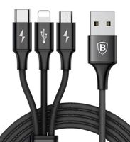 BASEUS- “base on user” czyli bazować na użytkownikach- to hasło przewodnie marki, powstałej w 2009 roku w Shenzhen. Produkty które tworzy mają być przede wszystkim praktyczne, trwałe, oraz atrakcyjne wyglądać. Największą wartością firmy jest jej dział projektowy, regularnie nagradzany w krajowych i międzynarodowych konkursach. Ma na koncie wiele patentów związanych ze stosowaniem nowatorskich rozwiązań. Każdego miesiąca oferta powiększa się o kolejne urządzenia i akcesoria z branży 3C (Computer, Communication and Consumer Electronic) Bogate wzornictwo i kolorystyka pozwalają lepiej dopasować przedmiot do preferencji użytkownika. Jesteśmy oficjalnym resellerem marki Baseus w Polsce dzięki czemu możemy zaoferować szeroki wybór oryginalnych produktów, objętych gwarancją producenta. Zadowolenie klienta jest dla nas kwestią kluczową, dlatego przygotowaliśmy dla Ciebie specjalne warunki: -100 dni na zwrot -2 lata gwarancji-Darmowa wysyłka od 99zł Kabel USB Micro lightning Type-C 3w1 Baseus Rapid Model: Rapid Series 3-in-1 Cable Długość: 120cm Kolor: czarny Prąd wyjściowy: 3A Wykończenie: aluminium, nylon, PVC Kompatybilność: urządzenia ze złączem lightning, microUSB, Type-C Kod producenta: CAMLT-SU01 Cechy charakterystyczne: szybkie ładowanie oraz transmisja danych nylonowa osłona zapobiega plątaniu się kabla Zdjęcia przedmiotu w pełnym rozmiarze i różnych aranżacjach można obejrzeć w galerii pod miniaturką na samej górze "aukcji". Opakowanie produktu to zawsze firmowy blister bądź pudełko.
