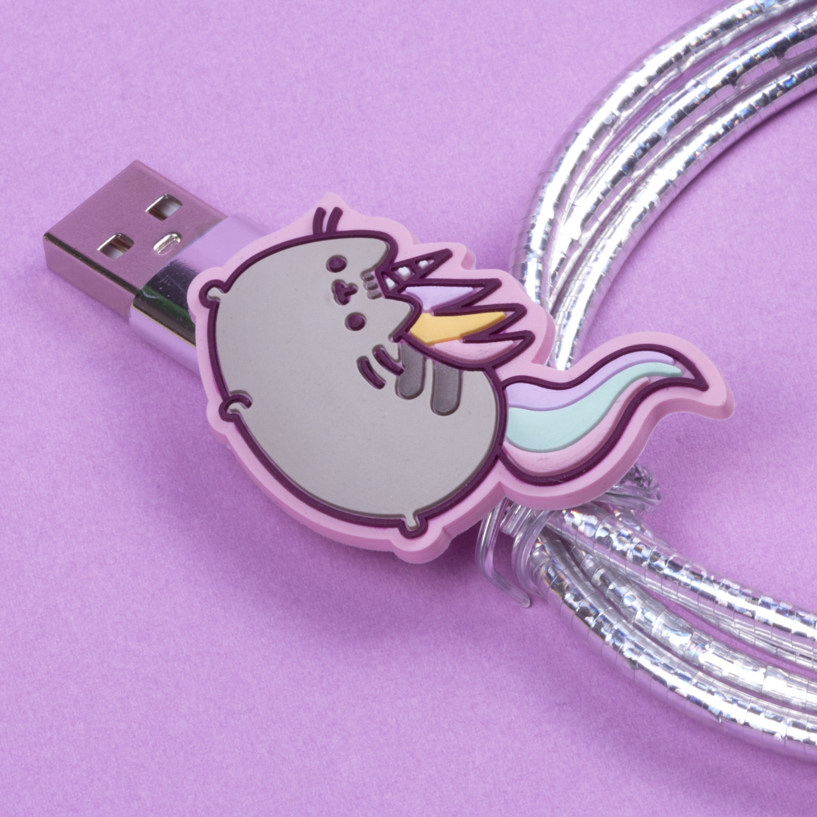 Ładowanie twoich urządzeń po prostu oszalało dzięki temu błyszczącemu kablowi do ładowania Pusheen z jednorożcem. Z jednej strony ma złącze USB, a na drugim końcu wymienne złącze Micro USB. Służy do ładowania urządzenia z systemem Android lub iOS