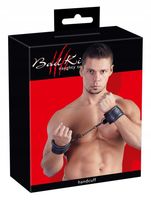 Czarne miękko wyściełane kajdanki (obwód 18-28 cm) Kajdanki wykonane są z imitacji skóry. Krótki metalowy łańcuszek o długości 16 cm z karabińczykami do łączenia kajdanek. Czarny.