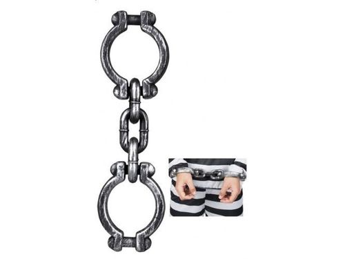 Kajdany na ręce do kreacji na imprezy karnawałowe w stylu policjanci i więźniowe. Do przebrania dla wieźnia lub więźniarki. Zabawny gadżet imprezowy. Wielkość 37 centymetrów.
