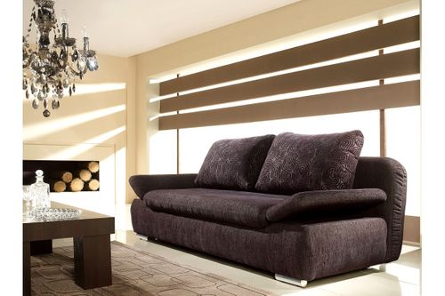 Nowoczesna kanapa z funkcją spania i pojemnikiem na pościel. Charakterystyczny kształt i stylowa kolorystyka dają unikalne połączenie.