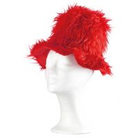 Włochaty kapelusz w kolorze czerwonym. Wykonany jest z tkaniny poliestrowej dobrej jakości, wewnątrz miękki zamsz. Rozmiar uniwersalny. Obwód ok. 58 cm, wysokość 12 cm. Produkt wysokiej jakości amerykańskiej firmy Amscan.