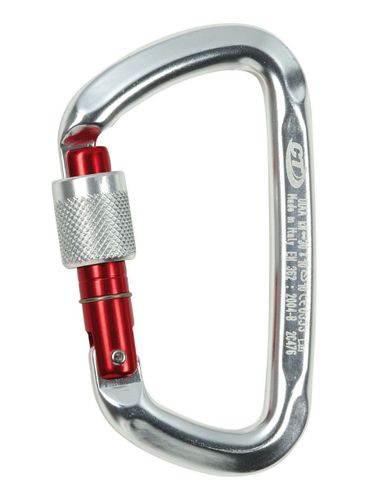 Karabinek D-kształtny dzięki czemu posiada bardzo dużą wytrzymałość wzdłużną (30 kN). Idealnie sprawdzi się jako karabinek do pracy z przyrządami lub karabinek pomocniczy. Zakręcany zamek chroni przed przypadkowym otwarciem.