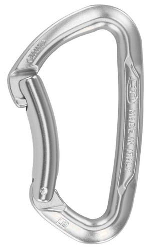 Świetny karabinek z klasycznym zamkiem wykonany ze stopów lekkich. Zastosowana przy jego produkcji technologia kucia na gorąco, dopracowana przez firmę Climbing Technology do perfekcji, zapewnia niską wagę przy utrzymaniu wysokich parametrów wytrzymałości. Gięty zamek posiada system Catch Free (bezząbkowy), który zapobiega przypadkowemu zaczepianiu się zamka o inny sprzęt wspinaczkowy (pętle, przyrządy, szpejarki). Wygięcie zamka znacznie ułatwia wpinanie liny.