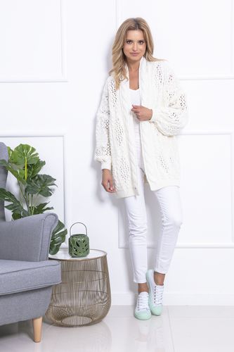 Potrzebujesz sprawdzonych zestawów, w których zrobisz doskonałe wrażenie? Uzupełnij swoją garderobę o wyjątkowy kardigan z miękkiej przędzy. Ten cienki sweterek dobrze komponuje się z wiosennymi i letnimi rzeczami. Stworzysz z nim wiele zapadających w pamięć stylizacji. Noś go w komplecie z jasnymi, dopasowanymi spodniami w kant lub jeansami. Kardigan jest wykończony warkoczową plisą, która świetnie się prezentuje, a ażurowy wzór dodaje lekkości sylwetce. Możesz go założyć do sukienki maxi na wieczorny spacer lub wypad na miasto z przyjaciółkami. Wybierz model w odcieniu czystej bieli, subtelnego ecru, delikatnego pudrowego różu lub intensywnego princesblue. Ten sweterek to Twój must have na zagraniczny wyjazd – ochroni Cię przed chłodem nocy i morskim wiatrem. Na pewno będziesz w nim doskonale wyglądać przez cały urlop!