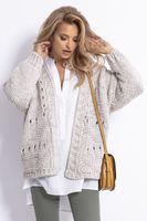 Potrzebujesz niezawodnych zestawów, w których zrobisz doskonałe wrażenie. Uzupełnij swoją garderobę o wyjątkowy, a do tego ciepły kardigan, udziany z wysokiej jakości certyfikowanej przędzy - wełny i alpaki z poliakrylem. Ten uroczy sweterek skomponuje się z różnymi ubraniami, stworzysz wiele doskonałych stylizacji. Kardigan bez zapięcia, rękawy wykończone mankietami, sprawiają, że dobrze układa się na sylwetce. Wykonany ślicznym splotem w dziurki ażurowe.