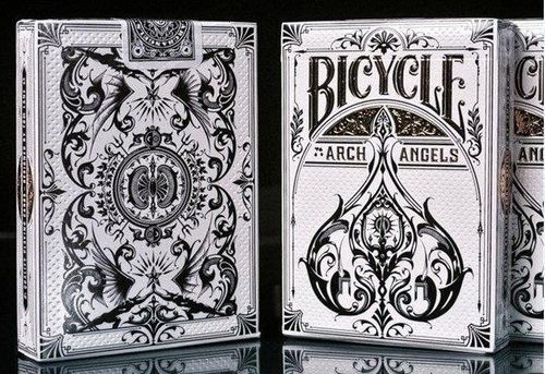 Standardowe indeksy na przeciwległych narożnikach karty. 52 karty + 2 jokery powlekane plastikiem, Air Cushion Finish.Rozmiar pokerowy (63 x 89 mm).Wyprodukowane we USA przez United States Playing Cards Co. Talia sygnowana logiem Bicycle(R) . Bicycle(R) Archangels to inspirowana mitstycyzmem, ręcznie stylizowana talia kart, która prezentuje nowy poziom elegancji.Talia ta jest dziełem Theory11 oraz ilustrowana przez Tom'a Lane. Back design to największa zaleta tej talii. Im bardziej się mu przyglądasz, tym więcej szczegółów dostrzeżesz. Ukazują zestawienie dobra i zła, światła i ciemności, dnia i nocy, aniołów i demonów. Archangels zawierają oryginalne i nietuzinkowe grafiki asów pik, jokerów, koszulek oraz opakowania. Niezwykła talia kart do gry.