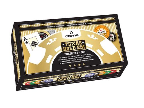 Zawiera plastikową talię kart Texas Hold'em, 300 żetonów, jeden żeton specjalny i księżeczkę zasadami gry.