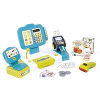Nowa kasa z elektronicznymi funkcjami, prawdziwy kalkulator ze zintegrowanym wyświetlaczem LCD, skaner z dźwiękiem i światłem, mechaniczna waga, czytnik kart kredytowych z drukarką paragonów, szuflada na pieniądze. W zestawie 27 akcesoriów.