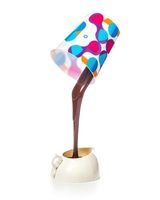 Wyjątkowo zaskakująca lampa w kształcie kawy wylewającej się z kubka do dzbanuszka stojącego na stole. Ale bez obaw, lampka nie pozostawia żadnych plam, ani też nie parzy. Za to wygląda bardzo oryginalnie, jakby zatrzymała czas i za nic miała prawa fizyki.