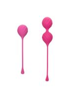 Tighten and tone pelvic floor muscles in only 5 minutes a day with the CalExotics Kegel Training 2-Piece Set. Give your pelvic floor muscles the training they have been craving with 2 gradually weighted exercisers to gently increase exercise intensity and sexual pleasure. The 2-piece set includes a 25 g and 45 g and a full workout routine. While the weights work to increase sexual arousal, they’re designed to gently tone and strengthen pelvic muscles. By working those key love muscles, you reduced the risk of pelvic floor disorders or incontinence, while increasing erotic pleasure. An extended retrieval cord makes removal quick, easy, and gentle. The kegel weights are made from a hygienically superior silicone. This body safe material is unscented and phthalate free to keep your most sensitive spots happy and healthy.