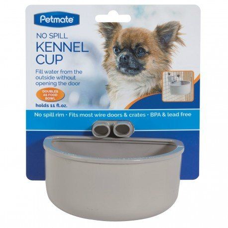 Pojemnik na wodę do transportera lub klatki. Kanał pozwala na napełnienie pojemnika z zewnątrz bez konieczności otwierania transportera lub klatki.