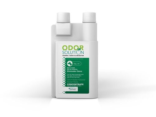 Eliminuje zapachy: stare, długotrwale utrzymujące się w klatkach, budach, kojcach, na wybiegach, podłogach, stołach, ścianach i innych dużych powierzchniach.