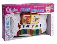 Zabawny Keyboard to zabawka edukacyjna dla dziecka powyżej 12-tego miesiąca. Klasyczne klawisze wydają 28 dźwięków, w tym książeczka z przekładaną kartką dodatkowo różnicuje dźwięki na odgłosy zwierzątek, bądź instrumentów muzycznych, w zależności od obrazka zamieszczonego na odpowiedniej stronie. Dodatkowe, migające i wielobarwne przyciski wygrywają 12 melodii, w tym pełna gamę DO RE Mi. Mały keybord to doskonały pierwszy krok do nauki i tworzenia pierwszych,samodzielnych utworów muzycznych. A zwłaszcza jako pomoc w rozwoju muzykalności dziecka, pobudzenia jego zmysłu słuchu, a także zdolności manualnych.