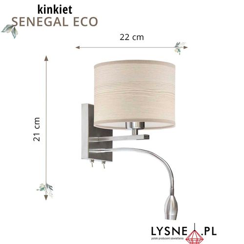 Niesztampowy wygląd, jakość wykonania, szeroki wachlarz wariantów kolorystycznych i funkcjonalność – to tylko niektóre z cech kinkietu SENEGAL. Na szczególną uwagę zasługuje dodatkowa energooszczędna dioda LED, która zapewnia dyskretne oświetlenie w nocy, np. w sypialni.