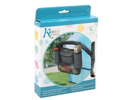 Zabierz na spacer wszystkie niezbędne akcesoria i spakuj je do organizera KioKids! Praktyczny organizer do wózka, który za pomocą rzepów możesz zamocować na dowolnej ramie, niezależnie od jej grubości. Organizer wyposażony jest w funkcjonalny haczyk. Oprócz kieszeni głównej dodatkowo wyposażony jest w kieszenie wykonaną z siateczki, a także dwie kieszenie idealne na bidon czy termos.