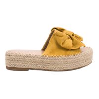 Niepowtarzalne klapki na wysokiej platformie w stylu espadryli. Idealne na letnią, słoneczną pogodę. Fantastycznie sprawdzą się podczas wakacyjnych wyjazdów, na plaży lub na spacerach. Są bardzo wygodne. Efektowna kokarda z przodu dodaje im wdzięcznego, dziewczęcego wyglądu. Te buty zrobią Ci cały look.