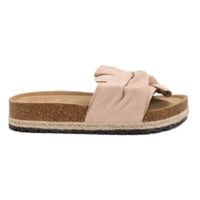 Brązowe klapki na dosyć wysokiej platformie ozdobionej paskiem wykonanym z jutowego sznurka doskonale prezentują się na stopach w sezonie letnim. Szeroki pasek wykonany z imitacji zamszu dobrze podtrzymuje palce i zapewnia oryginalny, kobiecy wygląd. Buty dopasowują się do stopy, zapewniając wyjątkowy komfort.