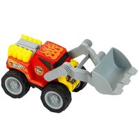 Spycharka została wyposażona w ruchome ramię i łyżkę. Pojazd idealnie sprawdzi się podczas zabawy w domu oraz na dworze. Za pomocą łyżki można nabierać piasek.