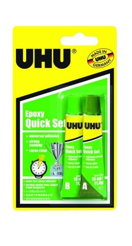 Dwuskładnikowy klej na bazie żywic epoksydowych do szybkiego, mocnego montażu. Proporcje mieszanki: 1cz. obj. żywicy do 1cz.obj. utwardzacza. Czas użycia: do 5 minut. Złącze montażowe otrzymuje się po 20 min. Ostateczna wytrzymałość = około. 1300 N/cm2. Klej jest przezroczysty zaraz po wyschnięciu; odporny na uderzenia, starzenie i wodę.