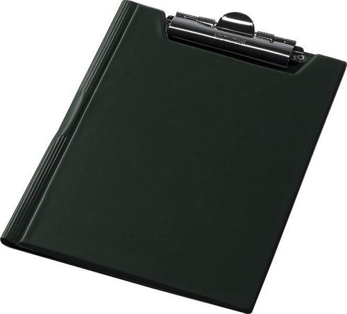-sztywna przednia i tylna okładka wykonana z bardzo lekkiej tektury oblewanej folią PVC-wyposażony w klip zaciskowy ząbkowany-na wewnętrznej stronie okładka posiada kieszeń z folii przezroczystej oraz miejsce na długopis-do zapisywania notatek-pojemność 100 kartek