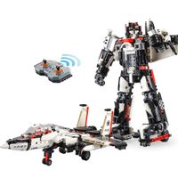 Po złożeniu myśliwca lub robota można go wyposażyć w baterie i z łatwością nim sterować za pomocą pilota dołączonego do zestawu.