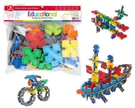 56 elementów w 8 kolorach pozwala stworzyć fantastyczne, przestrzenne figury - rower, samolot czy statek.