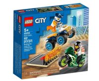 Z zestawem klocków LEGO City Ekipa kaskaderów (60255) młodzi amatorzy mocnych wrażeń mogą urządzić własny pokaz kaskaderski. Świetny motocykl i quad kaskaderski, dwie minifigurki kaskaderów w kaskach oraz płonąca rampa do skoków w tym zestawie jest wszystko, co może przydać się do samodzielnej zabawy i zachwycania tłumów! Zabawka konstrukcyjna na PLUS Zestaw zawiera proste instrukcje budowania oraz funkcję Instructions PLUS. To interaktywne instrukcje budowania, które można znaleźć w bezpłatnej aplikacji LEGO Life. Dają możliwość powiększania i obracania powstającego modelu, co pomoże przemienić nowicjuszy w mistrzów konstrukcji. Fajne zabawki dla dzieci LEGO City to raj dla automaniaków! W zestawach z pojazdami LEGO City dzieci znajdą niesamowitą gamę superszybkich, superświetnych modeli aut do zbudowania. Te pełne rewelacyjnych funkcji i ciekawych postaci zabawki inspirują do swobodnej, samodzielnej zabawy, podczas której dzieci tworzą scenariusze odzwierciedlające prawdziwe życie w ciekawy i wesoły sposób.